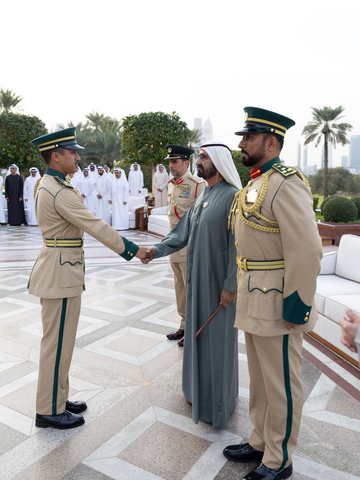 التقى صاحب السمو الشيخ محمد بن راشد آل مكتوم نائب رئيس الدولة رئيس مجلس الوزراء حاكم دبي "رعاه الله"، اليوم في قصر زعبيل، بأوائل أكاديمية شرطة دبي، معرباً عن فخره بما حققوه من إنجاز، ومثمّناً دور المؤسسات التعليمية والأمنية في إعداد قيادات وطنية قادرة على حفظ الأمن وتعزيز سيادة القانون.