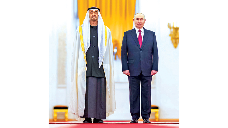 وقال صاحب السمو الشيخ محمد بن زايد آل نهيان، في تدوينة على منصة «إكس»، أمس: «بحثت اليوم في موسكو مع فخامة الرئيس فلاديمير بوتين، علاقات الشراكة الاستراتيجية الممتدة بين الإمارات وروسيا والعمل المشترك لتعزيزها، خاصة في المجالات التي تدعم التنمية المشتركة وفي مقدمتها الابتكار والطاقة والاستدامة والفضاء والثقافة وغيرها».
