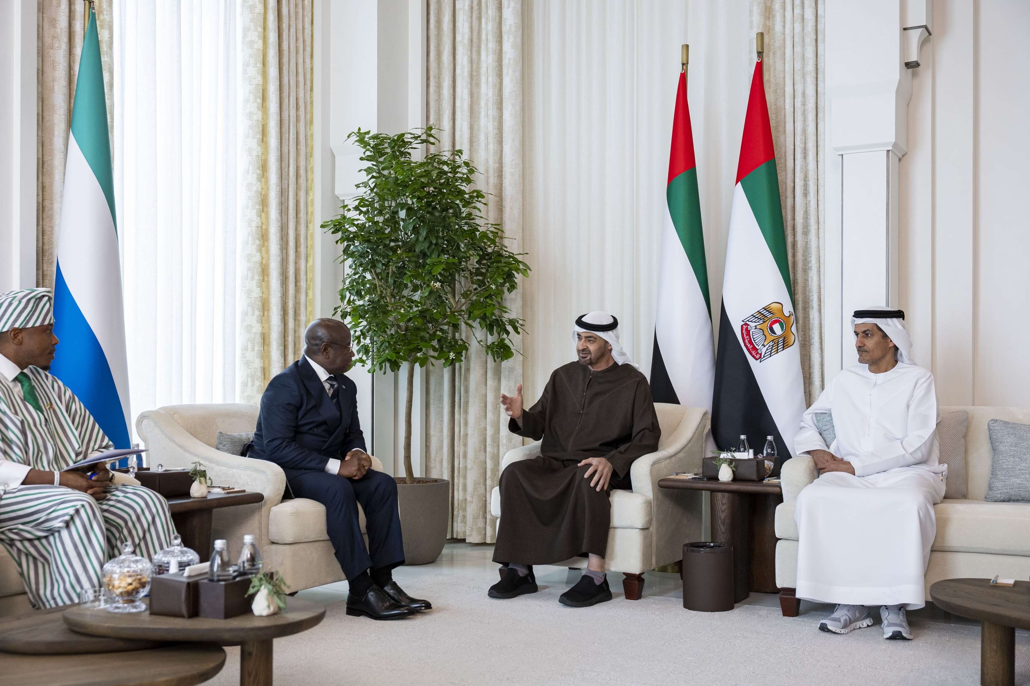 جاء ذلك خلال استقبال سموه ـ في قصر الشاطئ في أبوظبي - رئيس سيراليون الذي يقوم بزيارة عمل إلى الدولة.