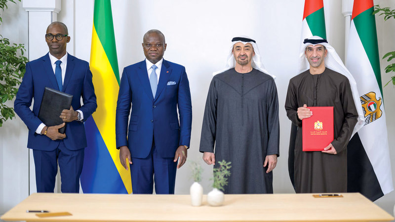 وشهد صاحب السمو الشيخ محمد بن زايد آل نهيان، ورئيس جمهورية الغابون، مراسم توقيع اتفاقية الشراكة الاقتصادية الشاملة بين دولة الإمارات والغابون والهادفة إلى الارتقاء بالعلاقات التجارية والاستثمارية الثنائية إلى آفاق جديدة من النماء والازدهار.