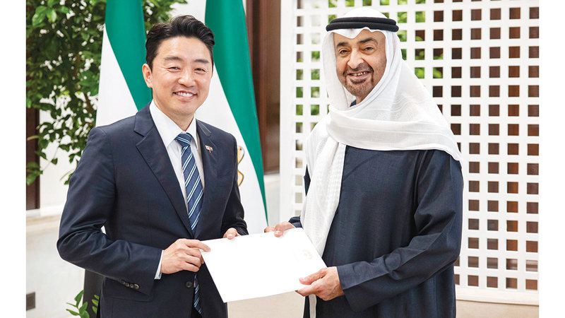 تسلّم صاحب السمو الشيخ محمد بن زايد آل نهيان، رئيس الدولة، حفظه الله، أمس، رسالة خطية من رئيس جمهورية كوريا، لي جيه ميونغ، تتصل بعلاقات التعاون وفرص تعزيزها في إطار «الشراكة الاستراتيجية الخاصة» التي تجمع البلدين.