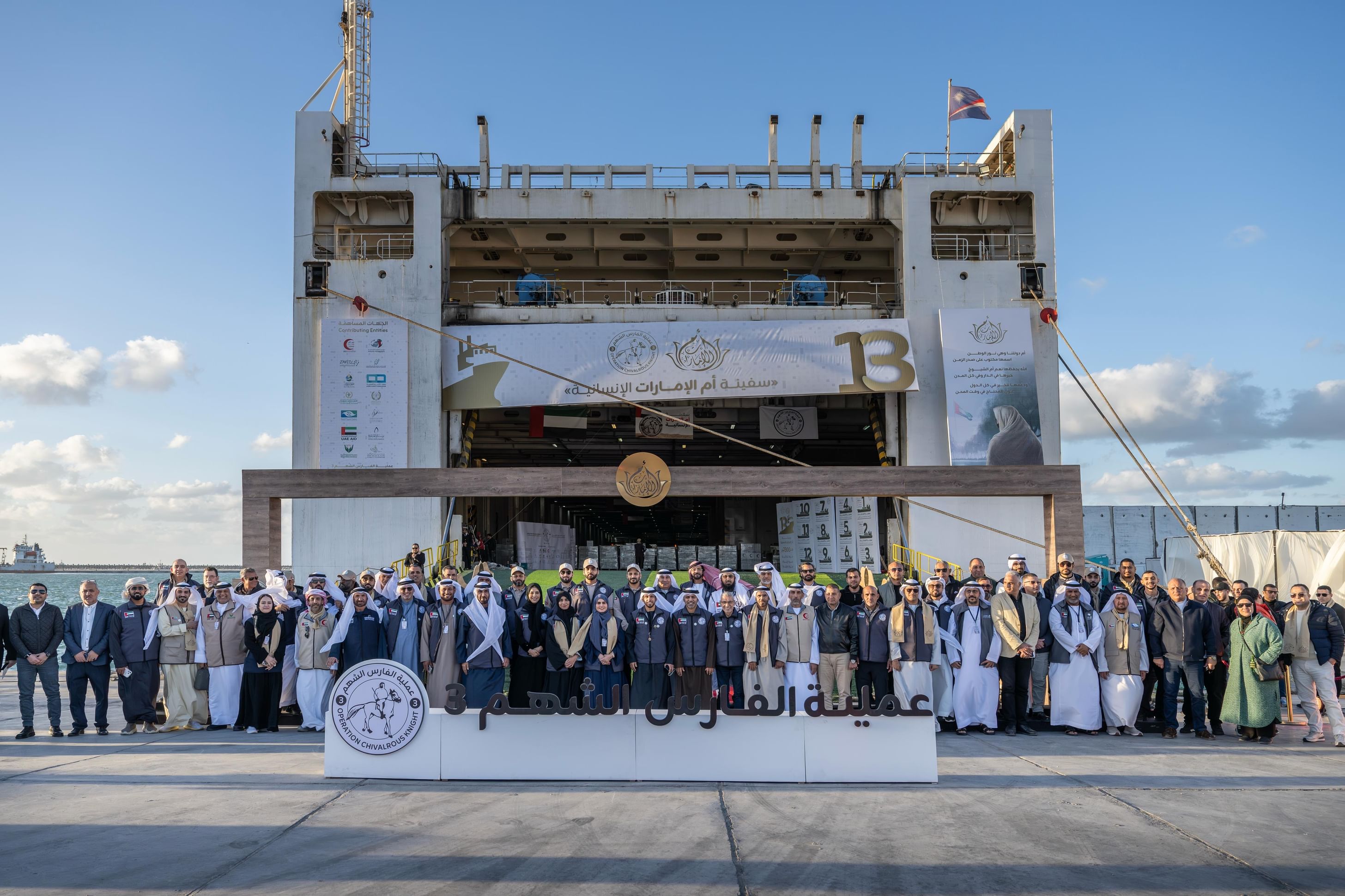 وتُعدّ "سفينة أم الإمارات الإنسانية" السفينة رقم (13) التي تُسيّرها دولة الإمارات ضمن الجسر البحري الإنساني المتواصل لدعم الأشقاء الفلسطينيين في قطاع غزة، تأكيداً على نهج دولة الإمارات الثابت في مدّ يد العون والإغاثة للشعوب المتضررة.