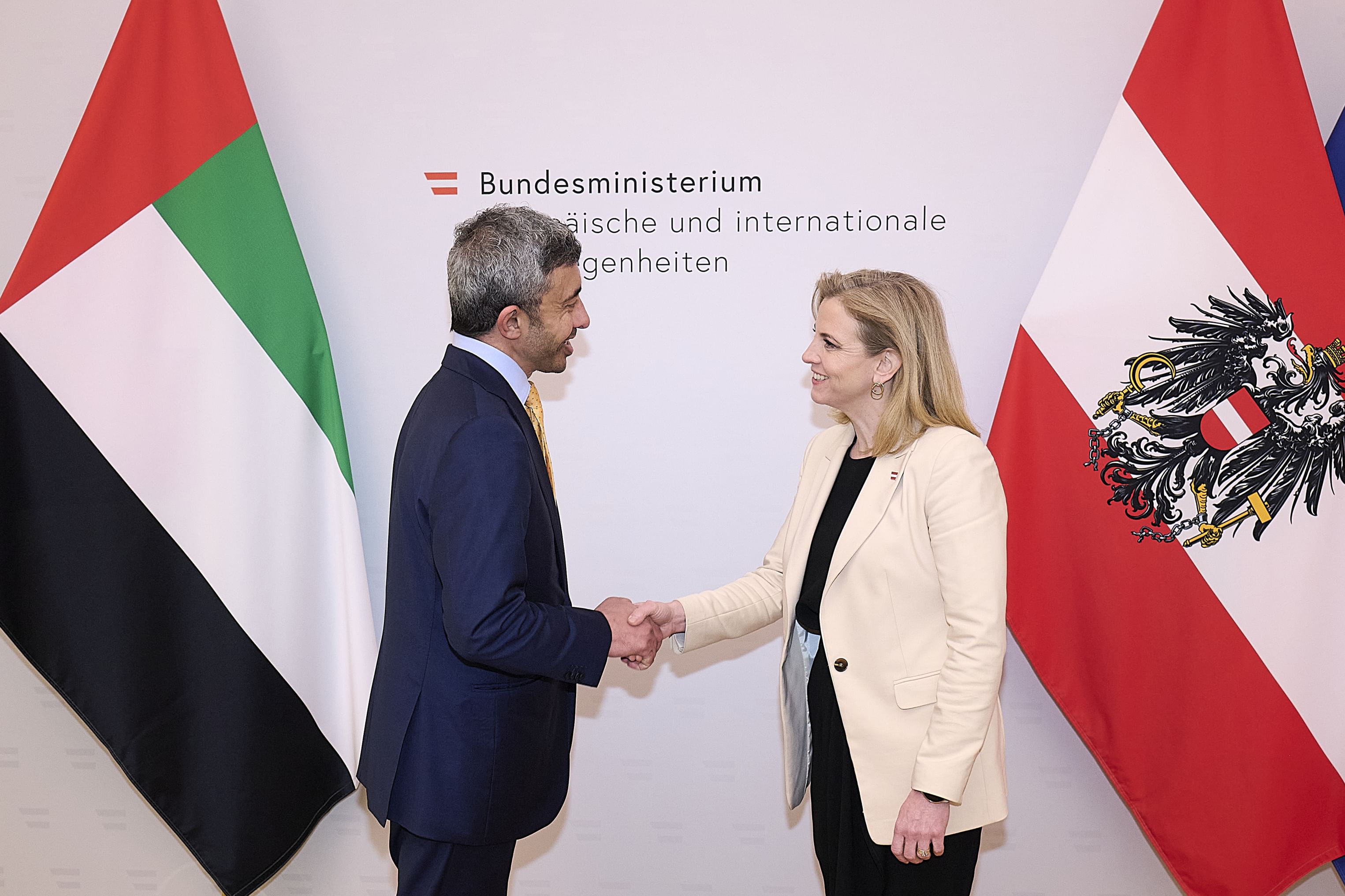 وأكد سمو الشيخ عبدالله بن زايد آل نهيان، خلال اللقاء، عمق العلاقات التي تربط دولة الإمارات وجمهورية النمسا، مشيراً إلى أن الشراكة الإستراتيجية الشاملة بين البلدين وفرت منصة مهمة لدفع التعاون الثنائي نحو آفاق أوسع من النمو والتطور في مختلف القطاعات.
