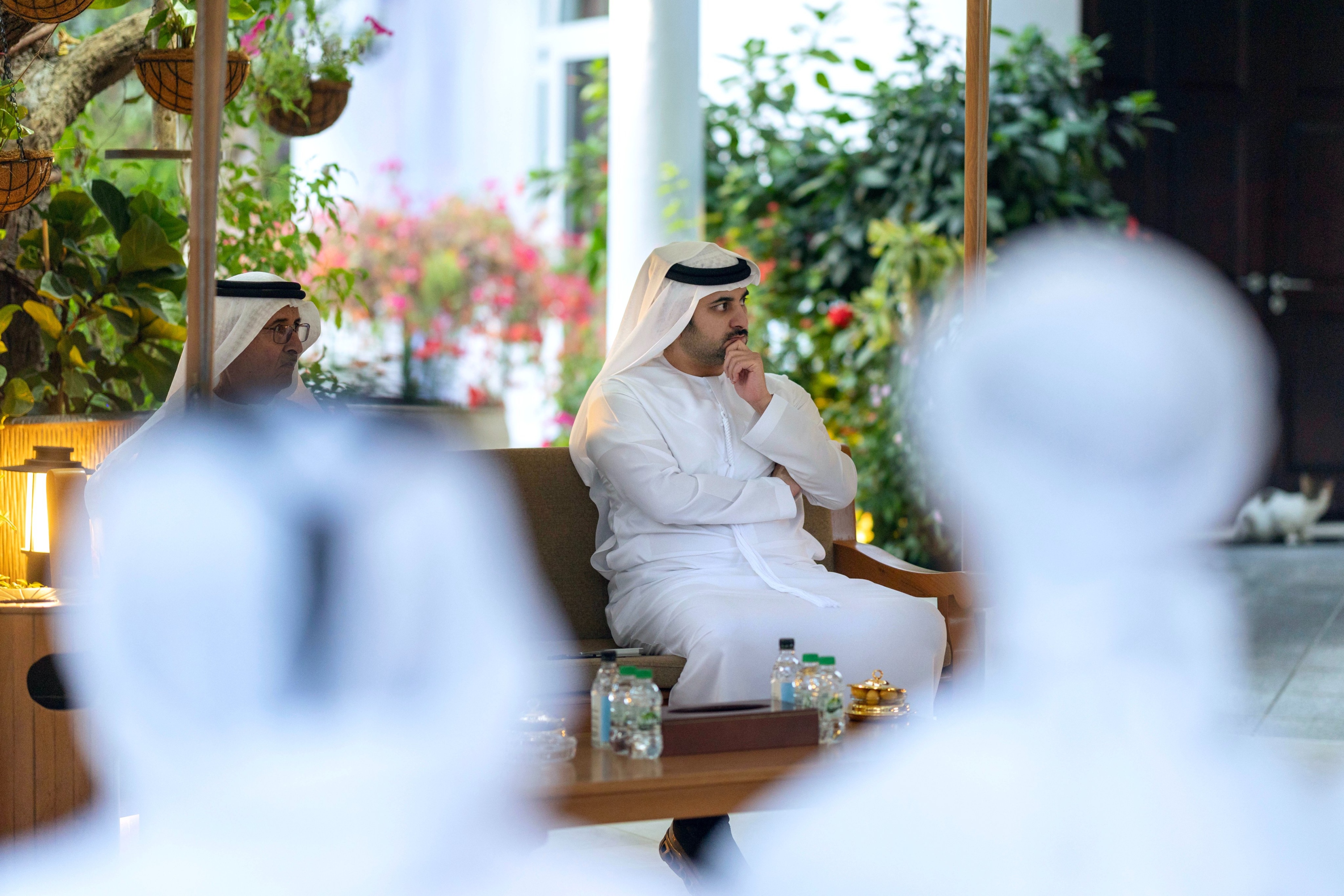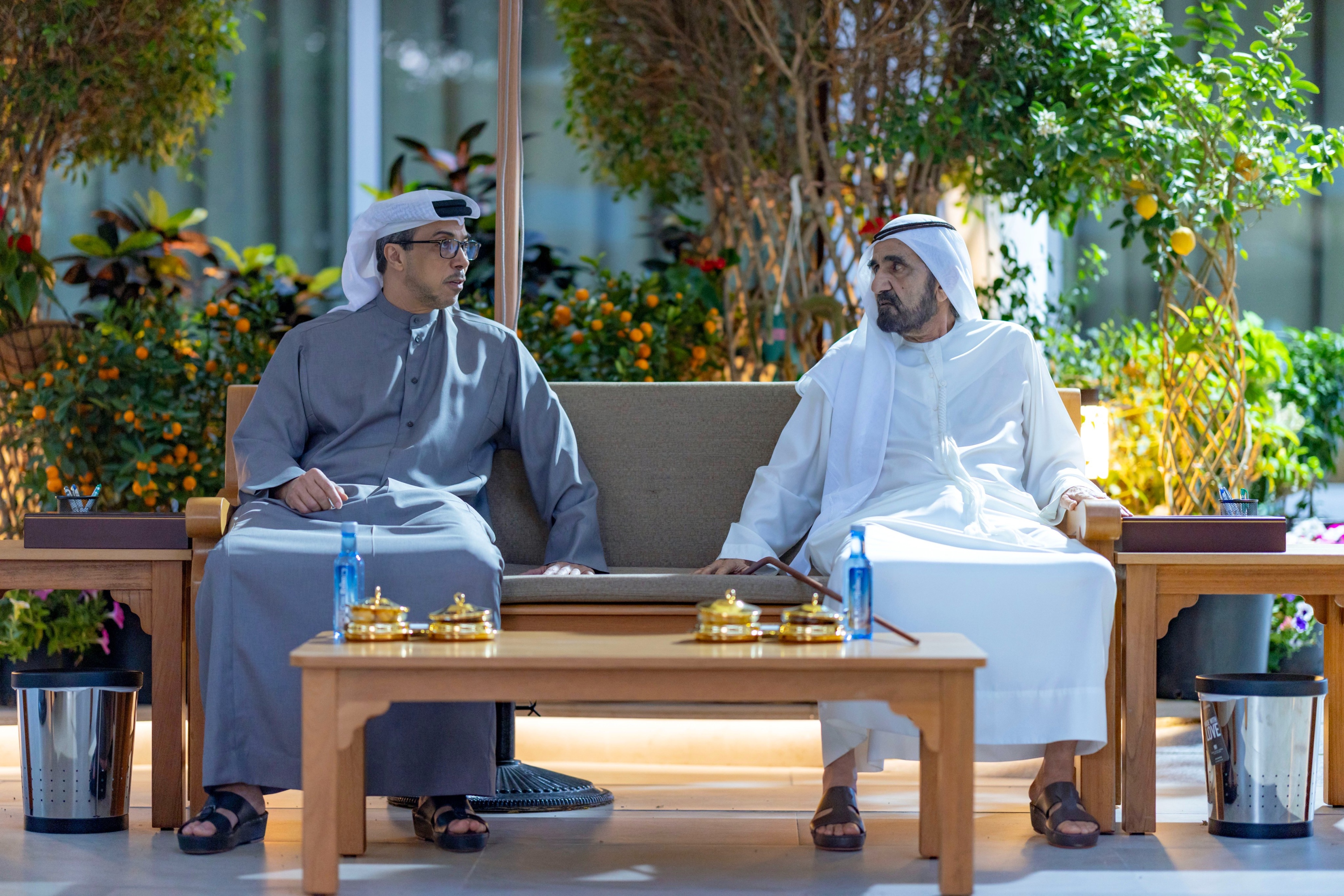 استقبل صاحب السمو الشيخ محمد بن راشد آل مكتوم، نائب رئيس الدولة رئيس مجلس الوزراء حاكم دبي "رعاه الله"، اليوم سموّ الشيخ منصور بن زايد آل نهيان، نائب رئيس الدولة نائب رئيس مجلس الوزراء رئيس ديوان الرئاسة، بحضور سمو الشيخ مكتوم بن محمد بن راشد آل مكتوم، النائب الأول لحاكم دبي نائب رئيس مجلس الوزراء وزير المالية.
