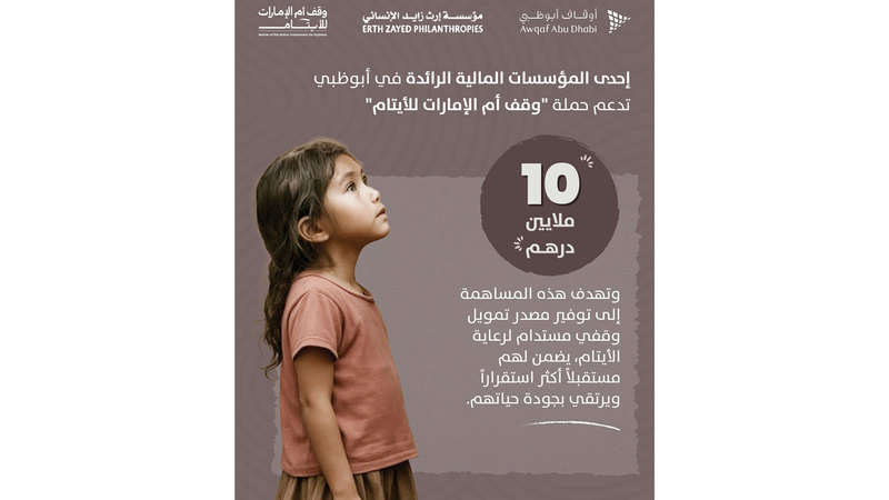 قدّمت إحدى المؤسسات المالية الرائدة في أبوظبي مساهمة بقيمة 10 ملايين درهم دعماً لحملة «وقف أم الإمارات للأيتام»، التي أطلقتها هيئة الأوقاف وإدارة أموال القُصّر «أوقاف أبوظبي»، تحت رعاية صاحب السمو الشيخ محمد بن زايد آل نهيان، رئيس الدولة، حفظه الله، بهدف توفير مصدر تمويل وقفي مستدام لرعاية الأيتام، يضمن لهم مستقبلاً أكثر استقراراً ويرتقي بجودة حياتهم.