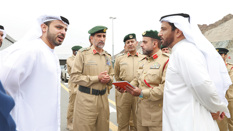 الفريق عبدالله المري خلال زيارته مركز شرطة حتا. من المصدر