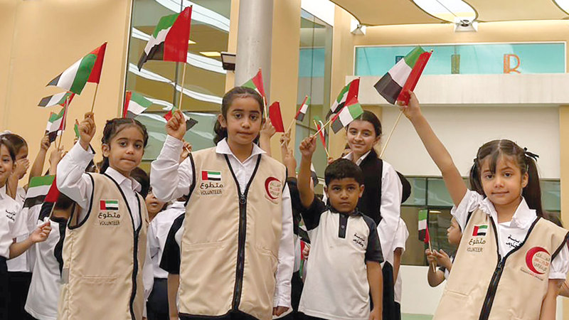 وتولى الأطفال مزون الكندي، ونهيان الكندي (من أصحاب الهمم)، ومزنة صالح، وسهيل محمد، وريما عبدالله، وفاطمة علي، ودينا علي، ورنيم آل علي، توزيع الأعلام وتثبيتها على المنازل من خلال التنقل بين الأحياء وطرق الأبواب، تعبيراً عن وطنيتهم واستجابةً لدعوة القيادة.