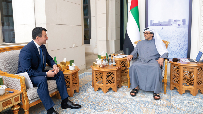 منصور بن زايد ونائب رئيس وزراء أوزبكستان يبحثان تعزيز العلاقات