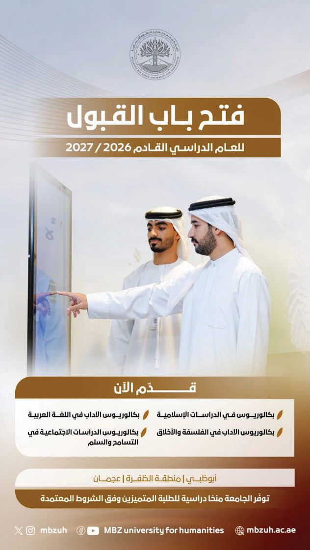 «محمد بن زايد للعلوم الإنسانية» تفتح التقديم لبرامج البكالوريوس