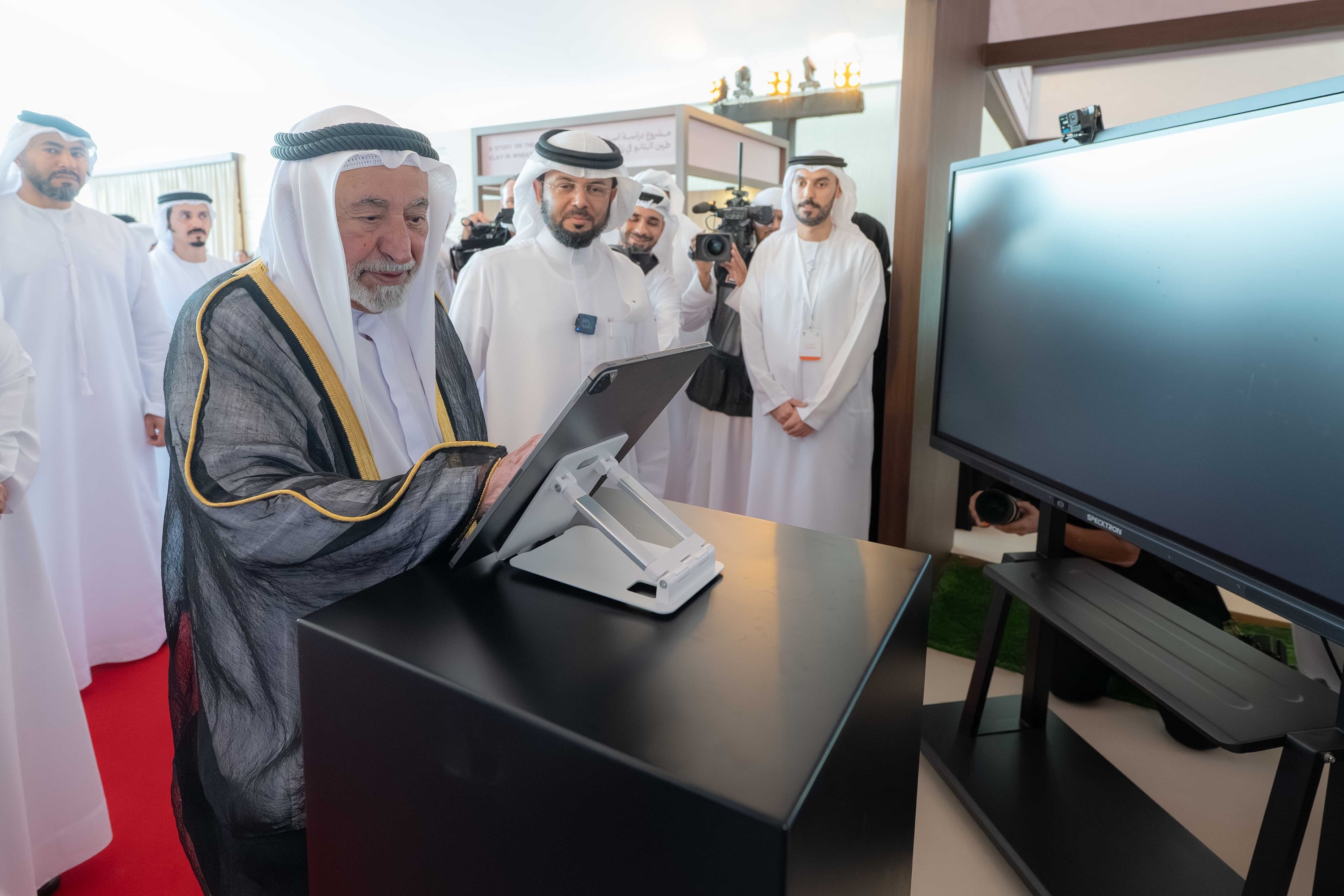 وشاهد صاحب السمو حاكم الشارقة والحضور فيلماً وثائقياً يتضمن التأكيد بأن منظومة الشارقة للأمن الغذائي العضوي لا تقتصر على الإنتاج فحسب؛ بل تقوم على أسس بحث علمي متطور حول إيجاد حلول للزراعة المستدامة عبر طين النانو وتحسين سلالات القمح.