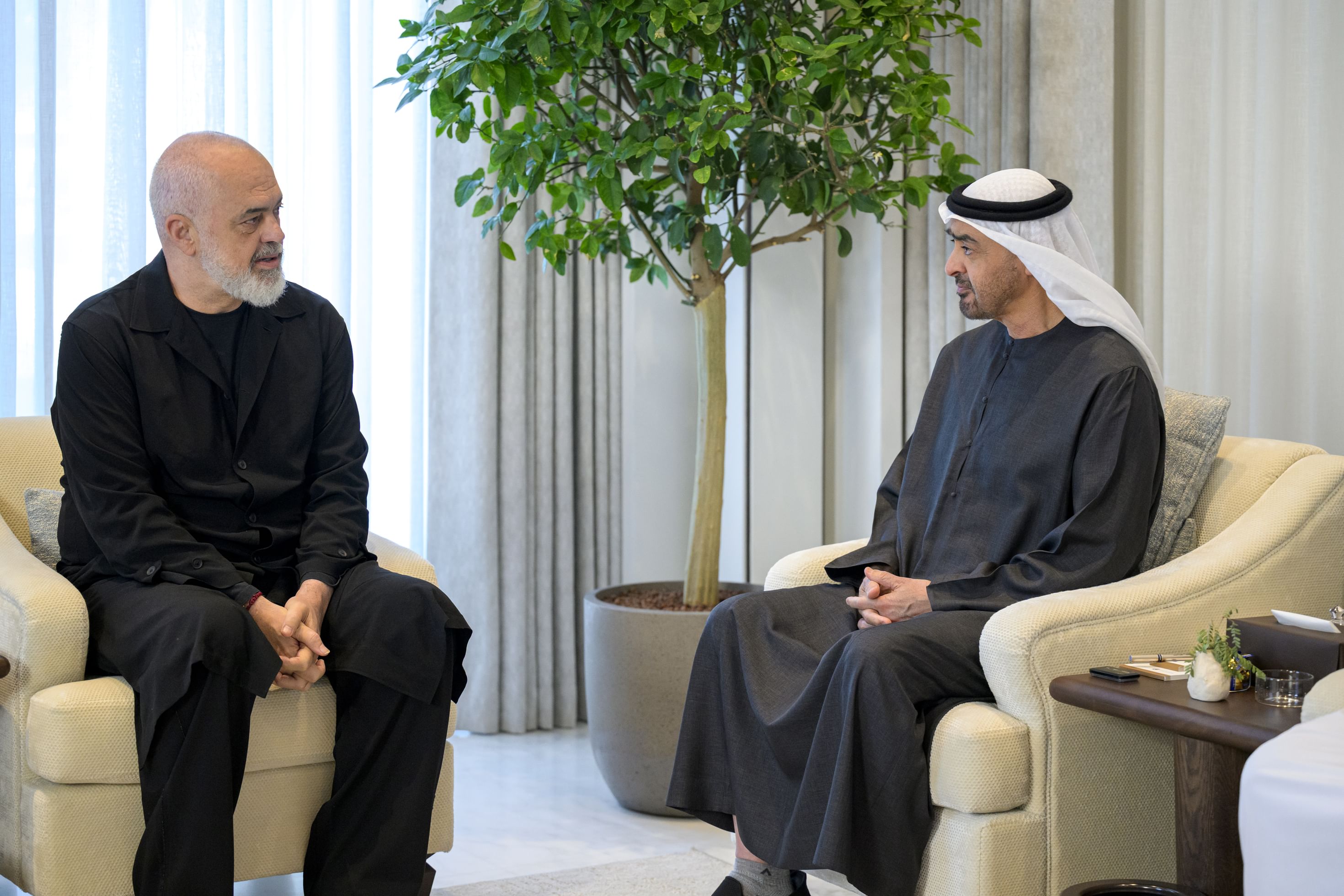 بحث صاحب السمو الشيخ محمد بن زايد آل نهيان رئيس الدولة "حفظه الله"، وإيدي راما رئيس وزراء جمهورية ألبانيا، مسارات تطور العلاقات الثنائية في مختلف المجالات خاصة الاقتصادية والتجارية والطاقة المتجددة والتكنولوجيا وغيرها من المجالات التي تشكل أولوية تنموية للبلدين بما يخدم مصالحهما المتبادلة ويعود بالخير والنماء على شعبيهما.
