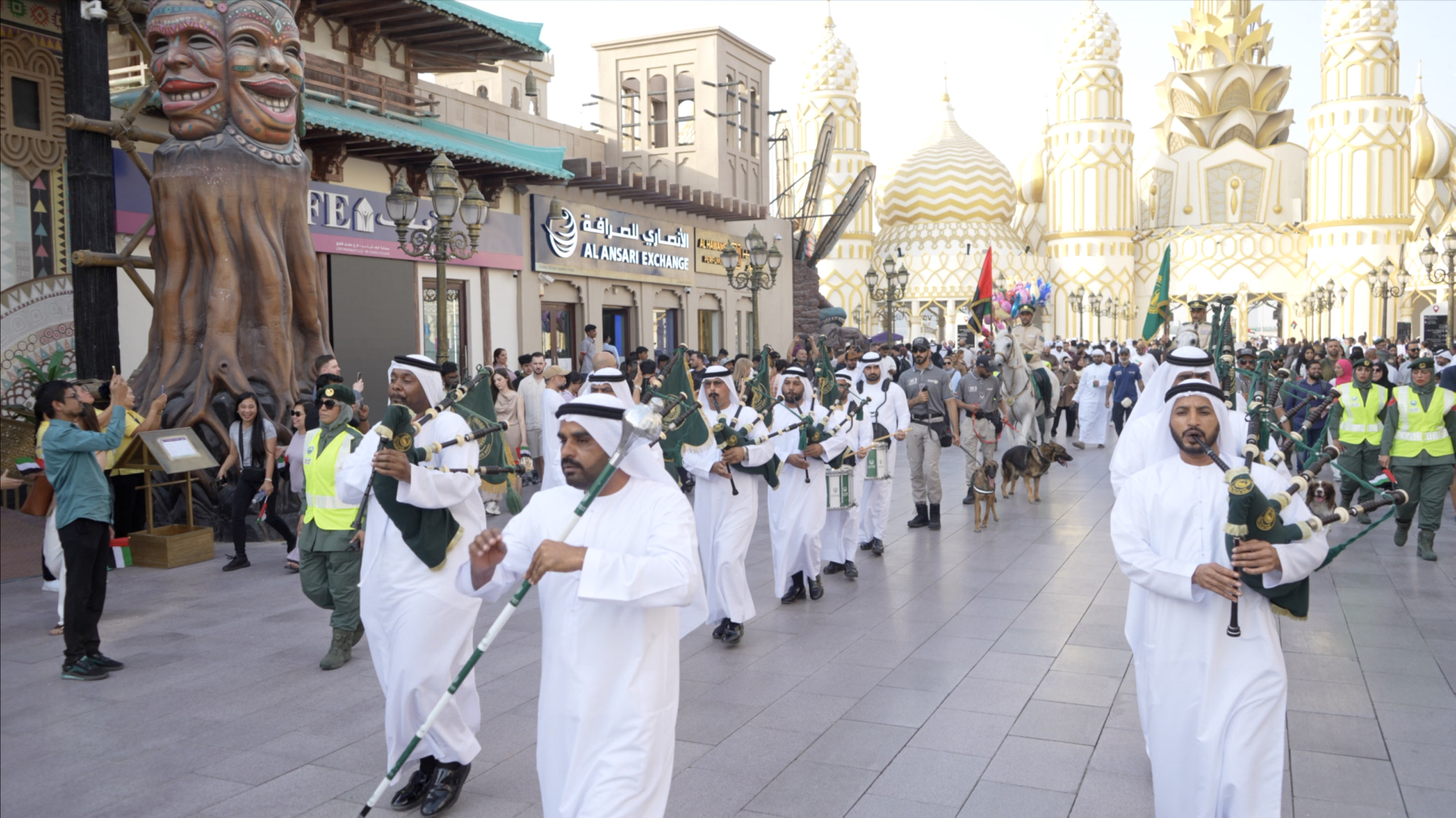 وتضمنت المبادرة التي نُفذت بالتعاون مع الشركاء، توزيع العلم على زوار القرية ضمن كرنفال إعادة افتتاحها، بمشاركة خيالة شرطة دبي، والدوريات الفارهة، والكلاب البوليسية التابعة لإدارة التفتيش الأمني K9، ودمُيتي الشرطي "منصور" و"آمنة".