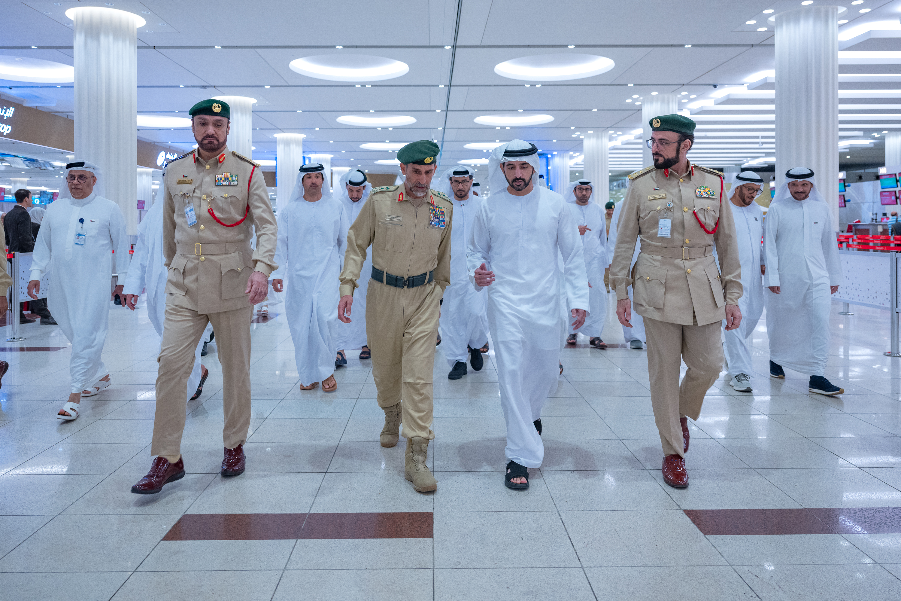 رافق سموّ الشيخ حمدان بن محمد بن راشد آل مكتوم خلال الزيارة الفريق عبدالله خليفة المري، القائد العام لشرطة دبي، وهلال سعيد المري، المدير العام لدائرة الاقتصاد والسياحة في دبي، والفريق محمد أحمد المري، مدير عام الإدارة العامة للهوية وشؤون الأجانب – دبي، والفريق عوض حاضر المهيري، نائب رئيس جهاز أمن الدولة بدبي.
