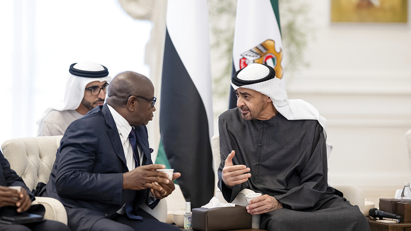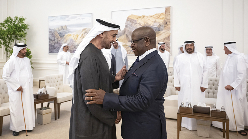 استقبل صاحب السموّ الشيخ محمد بن زايد آل نهيان، رئيس الدولة، حفظه الله، رئيس جمهورية سيراليون، جوليوس مادا بيو، الذي يقوم بزيارة عمل إلى الدولة.