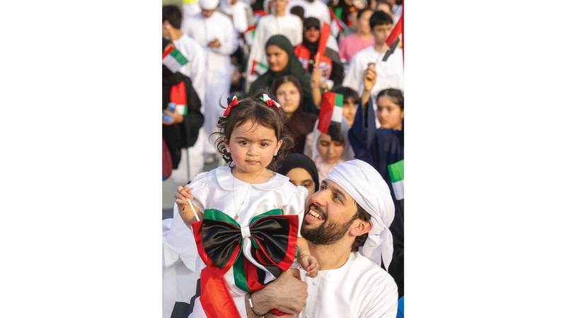 وجاب أهالي المنطقة الشوارع في مسيرة حاشدة احتفاءً بالعلم الإماراتي، وبرفقتهم خيالة شرطة دبي، والدوريات الفارهة، ودوريات الدراجات الهوائية، ودمية الشرطية «منة».