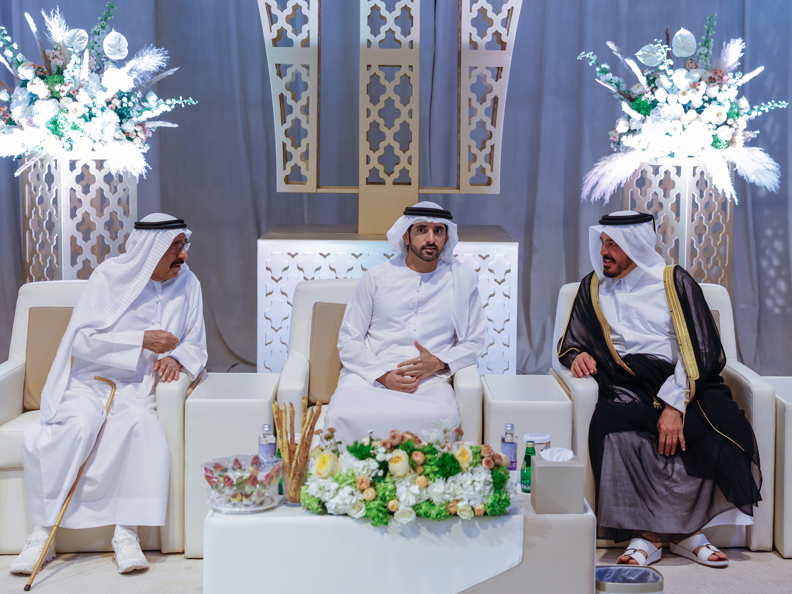 حضر سموّ الشيخ حمدان بن محمد بن راشد آل مكتوم، ولي عهد دبي، نائب رئيس مجلس الوزراء وزير الدفاع، رئيس المجلس التنفيذي لإمارة دبي، حفل الاستقبال الذي أقامه اليوم، الشيخ عبدالله بن محمد بن علي آل ثاني، في نادي الشارقة للجولف والرماية، بمناسبة زفاف نجله الشيخ غانم بن عبدالله بن محمد بن علي آل ثاني