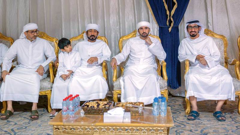 حمدان بن محمد يقدّم واجب العزاء في وفاة حميد حارب المهيري
