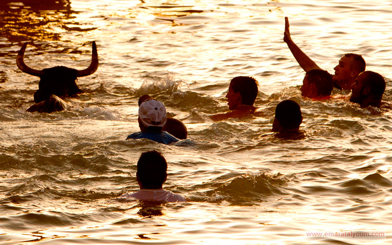 انتبه.. خلفك ثور!! 10 يوليو 2011 10 مايو 2016 تقيم مدينة دينيا الأسبانية سنويا مهرجان يعرف "الثور عند البحر" والذي يدفع فيه المشاركون مجموعة ثيران إلى مطاردتهم في شوارع المدينة. أ ب المطاردة تستمر حتى ساحل البحر الأبيض المتوسط لينتظر المشاركون اقتراب الثيران منهم بشكل كبير ومن ثم القفز في المياه مباشرة قبل أن تنطحهم. إي بي أيه أ ف ب أ ب أ ب تويتر لينكدين تويتر فيسبوك Share فيسبوك تويتر لينكدين Pin Interest Whats App
