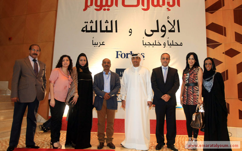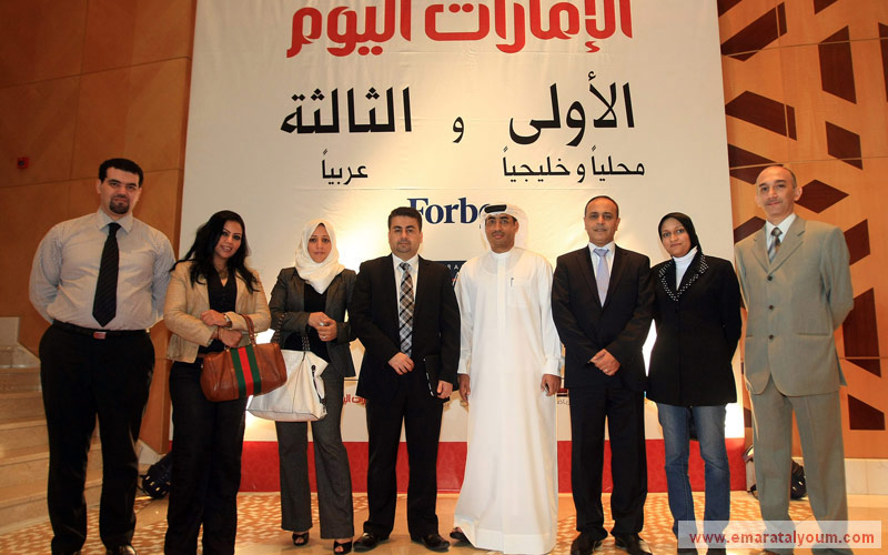 "الإمارات اليوم" تحتفل بتصدرها المحلي والخليجي 07 ديسمبر 2011 10 مايو 2016 أقامت مؤسسة دبي للإعلام حفل إفطار في فندق غراند حياة دبي بمناسبة حصول صحيفة "الإمارات اليوم" التابعة للمؤسسة على المركز الثالث في قائمة تضم أقوى 63 صحيفة عربية حضوراً على الإنترنت لعام ،2011 وفقاً لمجلة "فوربس - الشرق الأوسط". شهد الحفل العضو المنتدب مدير عام مؤسسة دبي للإعلام، أحمد عبدالله الشيخ، والمدير التنفيذي لشؤون الصحافة في مؤسسة دبي للإعلام رئيس تحرير "البيان"، الزميل ظاعن شاهين، ورئيس تحرير "الإمارات اليوم"، الزميل سامي الريامي، وحشد من العاملين في المؤسسة. فريق عمل صحيفة "الإمارات اليوم" فريق التحرير لموقع "الإمارات اليوم" فريق تطوير موقع "الإمارات اليوم" تويتر لينكدين تويتر فيسبوك "الإمارات اليوم" تحتفل بتصدرها المحلي والخليجي Share فيسبوك تويتر لينكدين Pin Interest Whats App