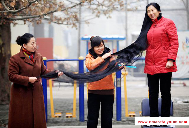 الشعر "تاج" المرأة .. 08 ديسمبر 2011 10 مايو 2016 اعترفت ني لينميب أنها سعيدة جدا بطول شعرها الذي يصل طوله الى مترين ونصف، واكدت ني التي تعيش في تايوان انها لم تقصّ شعرها منذ 14 عاما، ويتوجب على ني ان تقف على كرسي من اجل ان تصل الى اطراف شعرها التي تلامس الارض لتسرحه بعناية-رويترز تويتر لينكدين تويتر فيسبوك Share فيسبوك تويتر لينكدين Pin Interest Whats App