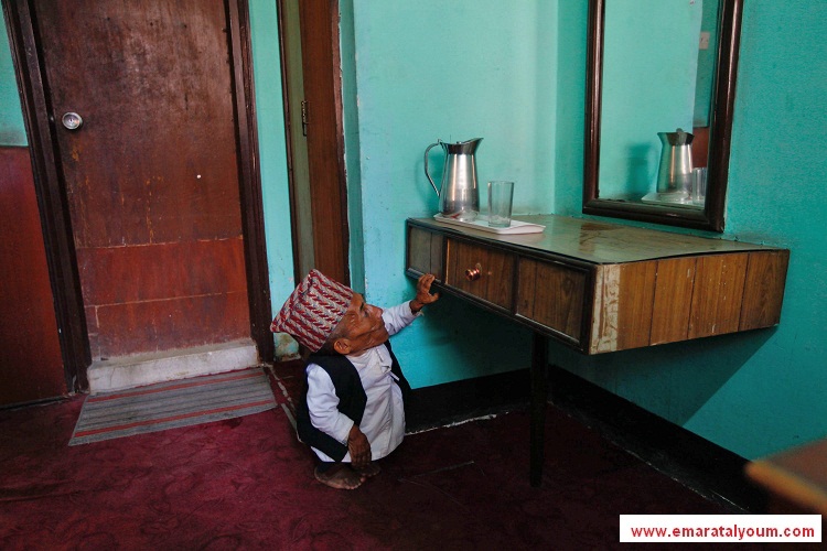 أقصر رجل في العالم 26 فبراير 2012 09 مايو 2016 تشاندرا بهادور دانغي، يبلغ من العمر 72 عاما، يسعى ليكون أقصر رجل في العالم، حيث لا يتجاوز طوله الـ56 سنتيمترا، أي ما يعادل 22 إنشا - وكالات من المرجح أن يدخل تشانرا موسوعة غينيس العالمية للأرقام القياسية، تحت لقب "أقصر رجل في العالم"، متغلبا على الرقم السابق الذي بلغ 60 سم طول تشاندرا لا يتجاوز طول الصحيفة الورقية حتى الإبريق يبدو عملاقا مقارنة بحجم تشاندرا تويتر لينكدين تويتر فيسبوك أقصر رجل في العالم Share فيسبوك تويتر لينكدين Pin Interest Whats App
