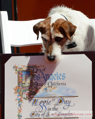 هوليوود تكرّم الكلب "أوغي" 26 يونيو 2012 08 مايو 2016 كرمت هوليوود الكلب أوغي الذي اشتهر في فيلم "الفنان -The Artist " من خلال وضع بصمات قوائمه أمام مسرح "غرومان" الصيني إلى جانب بصمات يديّ وقدميّ عدد من المشاهير. أ ف ب / رويترز وصل أوغي وهو كلب من نوع "جاك راسل" إلى الحفل برفقة مدربه عمر فون مولر إلى مكان الحفل الذي استضافته شركة "سوني بيكتشرز هوم إنترتينمنت" على متن سيارة إطفاء ثم وقف على الأسمنت لترك بصماته وينضم أوغي بذلك إلى حشد من المشاهير الذين تركوا بصماتهم أمثال مارلين مونرو وجوني ديب وفريد أستير على يسار أوغي تقف كلبة هي حفيدة الكلبة "لاسي" والتي اشتهرت في مسلسل يحمل الإسم نفسه. تويتر لينكدين تويتر فيسبوك هوليوود تكرّم الكلب "أوغي" Share فيسبوك تويتر لينكدين Pin Interest Whats App