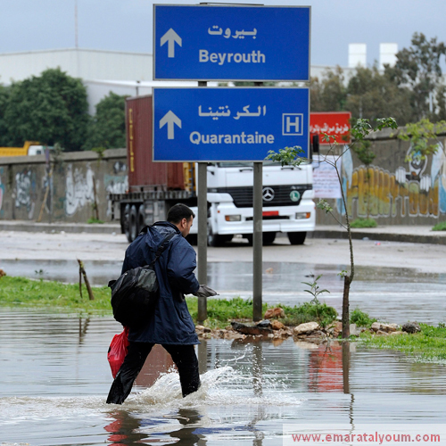 المياه تغمر لبنان 08 يناير 2013 08 مايو 2016 تسببت المياه في جنوب لبنان، بمقتل طفل رضيع (6 أشهر) بعد أن جرفت خيماً تقطنها مجموعة من البدو، حيث جرفت السيول الطفل نحو البحر، ولم تتمكن القوى الأمنية من العثور على جثته. رويترز جرفت السيول أكثر من 200 رأس ماعز و7 بقرات. رويترز وتسببت الامطار الغزيرة التي لم تتوقف منذ يومين تقريبا بارتفاع منسوب الانهر وغطت الطرق التي غرقت فيها السيارات، وعلقت في زحمات سير، لا سيما عند مداخل بيروت. إي بي أيه تسببت الأمطار بمقتل عجوز (67 عاما) بعد انزلاق سيارته بفعل السيول على طريق المنصورية شمال شرق بيروت. رويترز خلفت العاصفة التي تجتاح لبنان ضحايا وأضراراً مادية بالغة في المزروعات والممتلكات والسيارات والطرق والبنى التحتية. إي بي أيه كما تسببت العاصفة بقطع اشجار وانهيار جدران وغمرت المياه الطبقات السفلية للمباني، لا سيما في بعض المدن الجنوبية والساحل وصولا الى الشمال. كما ادت الى انقطاع التيار الكهربائي في مناطق كثيرة. إي بي أيه تويتر لينكدين تويتر فيسبوك المياه تغمر لبنان Share فيسبوك تويتر لينكدين Pin Interest Whats App
