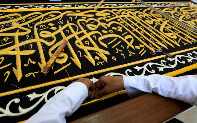 فن تطريز كسوة الكعبة المشرفة 13 مارس 2014 06 مايو 2016 عملية تطريز كسوة الكعبة المشرفة التي تتم صناعتها من الحرير في مصنع في مدينة مكة المكرمة. الصور من رويترز الكسوة بارتفاع 14 متراً وعرض 47 متراً ويتم تغييرها سنويا قبل بدء موسم الحج السنوي. تويتر لينكدين تويتر فيسبوك فن تطريز كسوة الكعبة المشرفة Share فيسبوك تويتر لينكدين Pin Interest Whats App