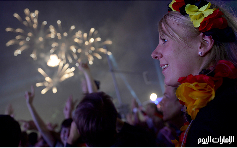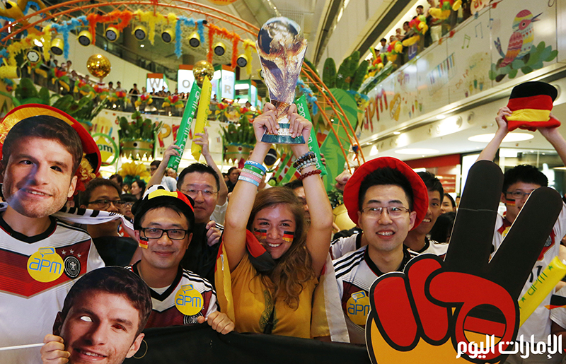 ألمانيا.. ذهب وكأس 14 يوليو 2014 06 مايو 2016 احتفل مشجعو المنتخب الألماني بفوزه بلقب بطولة كأس العالم 2014 بالبرازيل، على نظيره الأرجنتيني 1- صفر في المباراة النهائية للبطولة بفضل الهدف الذي سجله البديل ماريو جويتزه في الوقت الإضافي للمباراة. أ ب تويتر لينكدين تويتر فيسبوك Share فيسبوك تويتر لينكدين Pin Interest Whats App
