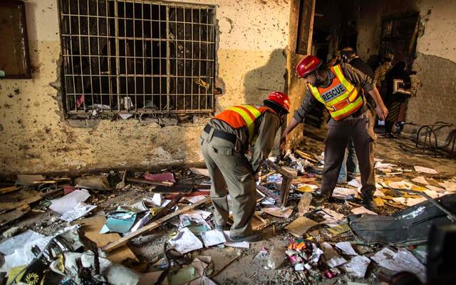 جريمة ضد الطفولة والمستقبل 17 ديسمبر 2014 05 مايو 2016 استيقطت باكستان على يوم حداد اليوم بعد أن قتل مسلحون من حركة طالبان 132 تلميذا بمدرسة يديرها الجيش في مدينة بيشاور في هجوم مروع أحدث صدمة في البلاد - وكالات دماء الضحايا على الأرض وفي الإطار صورة نشرتها طالبان للإرهابيين الذين قاموا بعملية قتل الأبرياء. ا ف ب وبعد يوم على الهجوم خيمت أجواء الحزن على بيشاور ولا يزال كثيرون في حالة صدمة وهم يستعيدون الأحداث المروعة ويحاولون تهدئة بعضهم بعضا بينما يستعد الآباء لدفن أبنائهم خلال جنازات جماعية في بيشاور ومحيطها وأعلنت حكومة رئيس الوزراء نواز شريف الحداد لمدة ثلاثة أيام على أرواح الضحايا تويتر لينكدين تويتر فيسبوك Share فيسبوك تويتر لينكدين Pin Interest Whats App