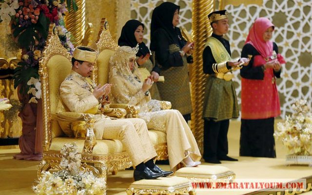 زفاف أسطوري في بروناي 13 أبريل 2015 06 مايو 2016 زفاف أصغر أبناء سلطان بروناي حسن البلقية في قصر استانا نور الأيمان الواقع في عاصمة بروناي بندر سري بكاوان. ارتدى العروسان ملابس ذهبية اللون ومرصعة بالألماس ، كما حملت العروسة باقة من الأحجار الكريمة بدلا من الورد من المقرر أن تستمر مراسم زفاف الأمير عبد الملك وزوجته دايانغكو حتى 15 إبريل الجاري. تويتر لينكدين تويتر فيسبوك Share فيسبوك تويتر لينكدين Pin Interest Whats App