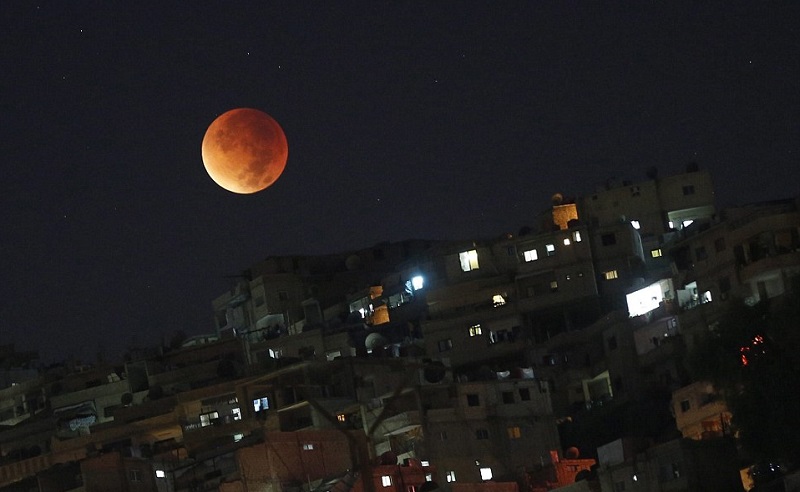 صور مذهلة لـ"القمر الدامي" 28 سبتمبر 2015 05 مايو 2016 الخسوف القمري الكامل أو ما يسمى "القمر العملاق" و"القمر الدامي" حيث يظهر أكبر وأكثر توهجاً عن المعتاد، إذ يصل الى النقطة في مداره التي يكون فيها أقرب للأرض. وكالات تويتر لينكدين تويتر فيسبوك Share فيسبوك تويتر لينكدين Pin Interest Whats App
