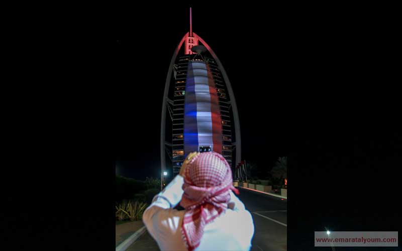 بالصور.. معالم الإمارات تغير ألوانها تضامناً مع باريس 16 نوفمبر 2015 05 مايو 2016 اضيئت أبرز معالم ومباني دولة الإمارات العربية المتحدة، مساء أمس، بألوان العلم الفرنسي "الأزرق والأبيض والأحمر"، تضامناً مع باريس بعد الهجمات الإرهابية التي شهدتها العاصمة الفرنسية.- تصوير أمجد تويتر لينكدين تويتر فيسبوك Share فيسبوك تويتر لينكدين Pin Interest Whats App