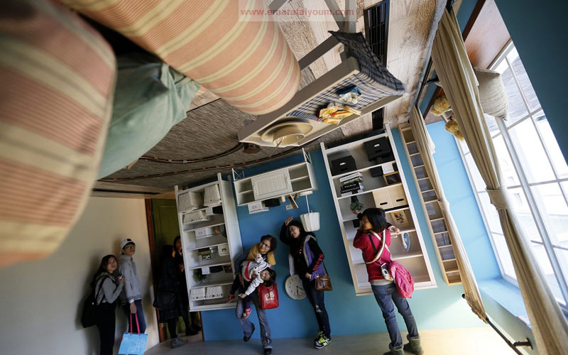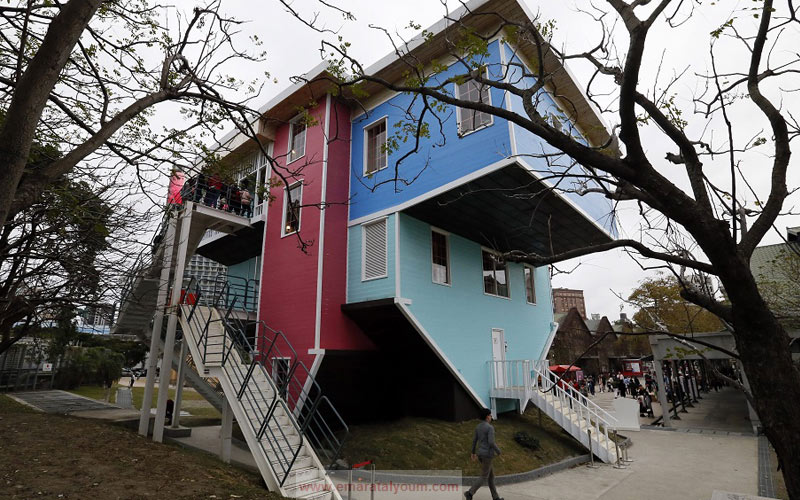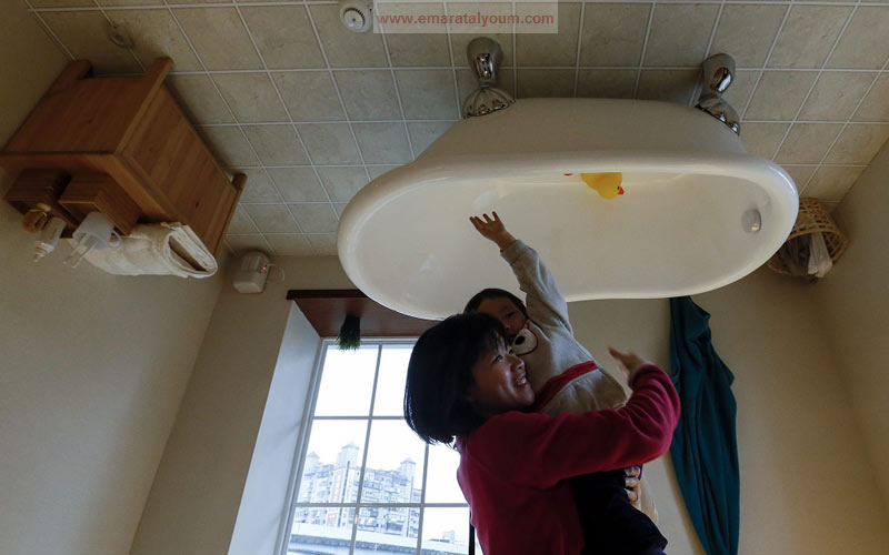 بالصور..بيت عائلي مقلوب بمليوني درهم 23 فبراير 2016 06 مايو 2016 شهد معرض البيت العائلي المقلوب في العاصمة التايوانية تايبيه إقبالاً كبيراً من الزوار الذين استمتعوا برؤية غرف بيت عائلي عادي لكن بالمقلوب وكأنهم يسيرون على سقف البيت. الصور من إي بي أيه وقال منظموا المعرض أن بناء البيت احتاج شهرين كاملين وبتكلفة 600 ألف دولار أميركي. تويتر لينكدين تويتر فيسبوك Share فيسبوك تويتر لينكدين Pin Interest Whats App