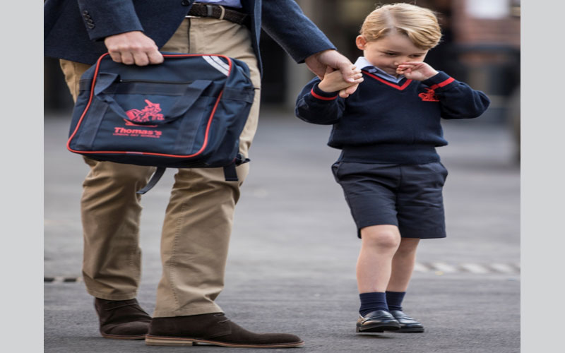 ونشر قصر كنسينجتون، مقر إقامة الأمير وليام في لندن، صورا للأمير جورج وهو في طريقه إلى المدرسة بالزي الأزرق الداكن.