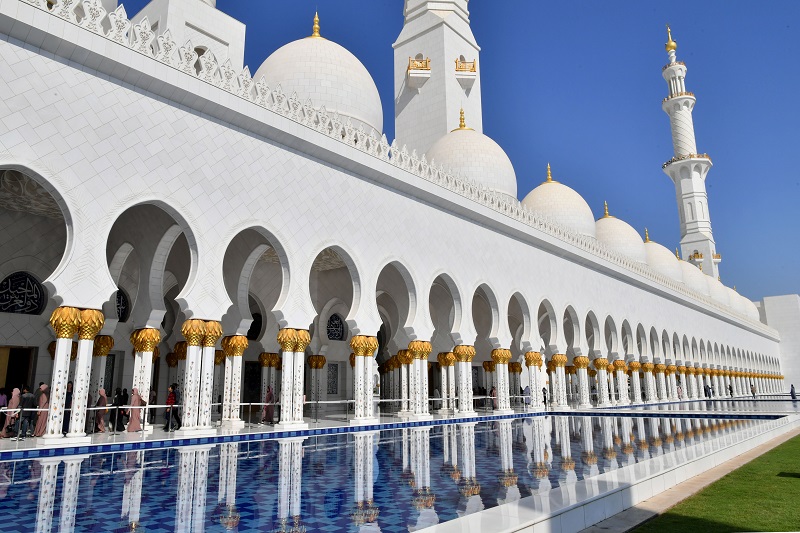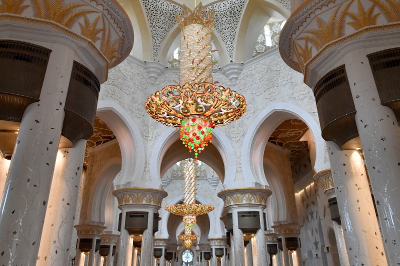 يعد جامع الشيخ زايد في العاصمة ابوظبي خامس أكبر جامع من حيث المساحة، ويستوعب الجامع 7000 مصلٍ ويمكن زيادة عدد المصلين الى 40.000 مصلٍ مع المساحة الخارجية، بني المسجد بالكامل من الرخام الأبيض وتزينها زخارف فسيفسائية، ويعلو الجامع 4 مأذن بطول 107 متر، ويحتوي المسجد على أكبر سجادة يدوية الصنع في العالم بمساحة 527 متر مربع.