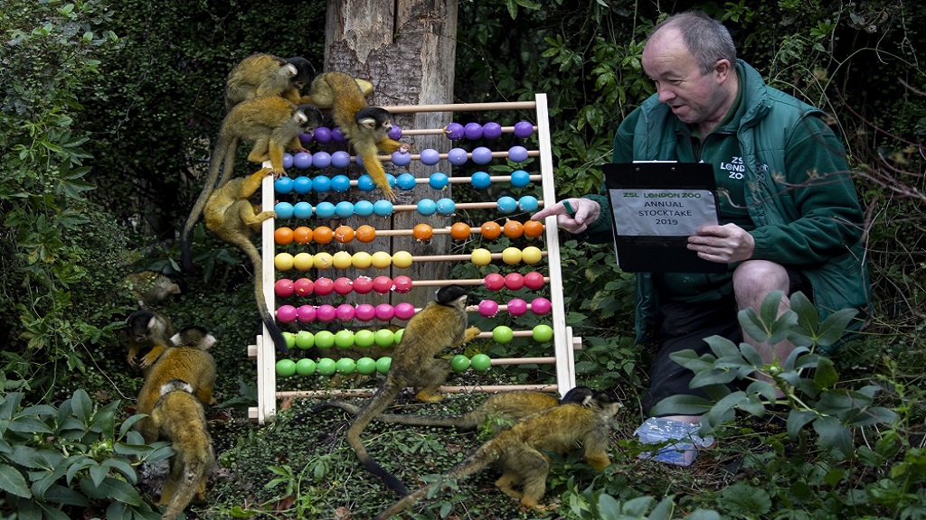 بدأ مسؤولو حديقة للحيوانات في لندن، اليوم، مهمتهم السنوية المتعلقة بإحصاء أكثر من 700 نوع بالحديقة مستخدمين هدايا لتحفيز بعض الحيوانات للخروج من أوكارها من أجل الجرد السنوي.