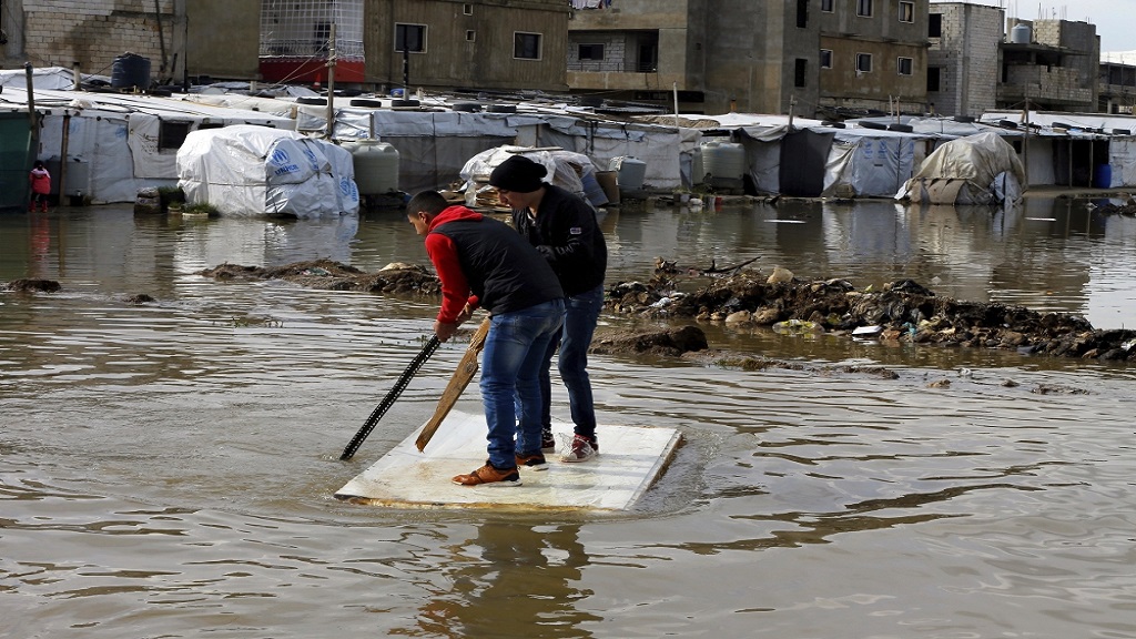 ضربت العاصفة الهوجاء التي وصلت الى لبنان عشرات مخيمات اللاجئين السوريين فأغرقتها تحت الثلوج والامطار والسيول، وتخوفت العديد من المنظمات غير الحكومية من المخاطر التي تحدق بسكانها.