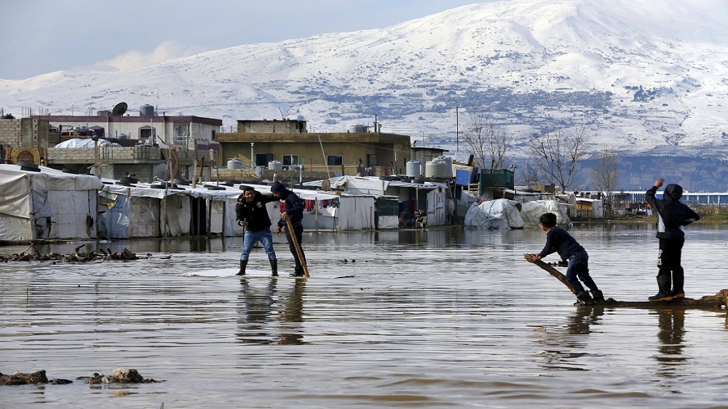 شتاء لبنان يغرق مخيمات اللاجئين السوريين بالثلوج والأمطار