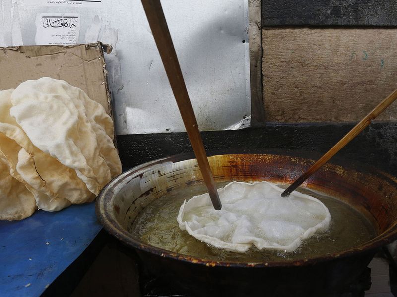 والناعم أو "خبز رمضان"، كما يطُلق عليه أيضاً، مزيج من الطحين والماء والزيت بشكل أساسي، يوضع في الزيت المغلي على شكل أرغفة، وما أن تصبح مقرمشة، يتم وضعها جانباً وتزين بدبس العنب أو التمر، الذي يُعطي للطبق نكهته.