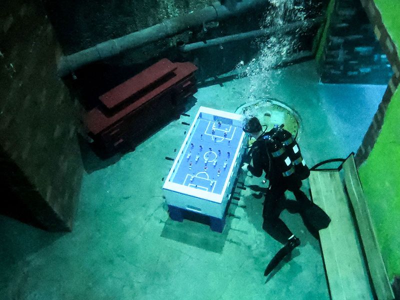 وسيكون باستطاعتهم الغطاسين استكشاف معالم تشبه مدينة غارقة، واستعمال عدد من أجهزة الألعاب التي تعمل بالعملات المعدنية تحت الماء.
