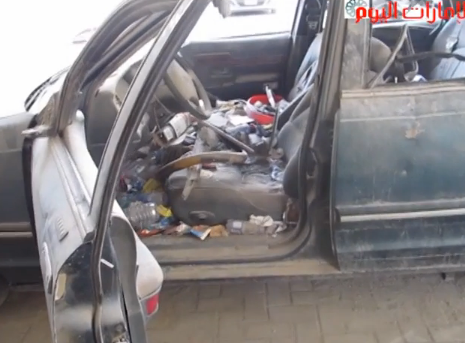 سيارة تتحول إلى مكب للنفايات في الشارقة