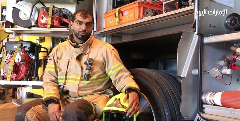 تحدث الوكيل اول بالدفاع المدني في دبي، حسن عباس ابراهيم البلوشي، الذي شارك في مكافحة حريق فندق "العنوان" عن تفاصيل إنقاذه لمصور علق في الحريق.