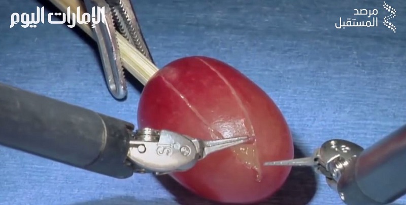 نشر مرصد المستقبل فيديو لروبوت يجري عملية جراحية على حبة عنب، فأذرعه الروبوتية قادرة على اجراء عمليات جراحية بالمنظار.
