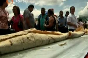 رقم قياسى جديد حققه العشرات فى مكسيكو سيتى بعد ان صنعوا اطول شطيرة من "التاكو "الشهيرة يتم صنعها فى البلاد. بلغ طول "التاكو" نحو خمسين مترا وشارك فى اعدادها السلطات المحلية وثماني وثلاثون مؤسسة محلية.