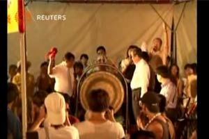 تنافس تايوانيون على تسلق قمة برج لارضاء الاشباح الجائعة في اليوم الاخير من شهر الاشباح الصيني التقليدي