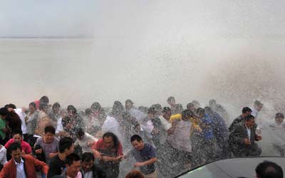تجمع نحو مائة وخمسين ألف صيني لمشاهدة واحدة من أكثر الظواهر الطبيعية غرابة في الصين وهي ظاهرة المد المضجر والتي تحدث مرة في العام نتيجة توتر في قوة الدفع بين النهر والبحر.