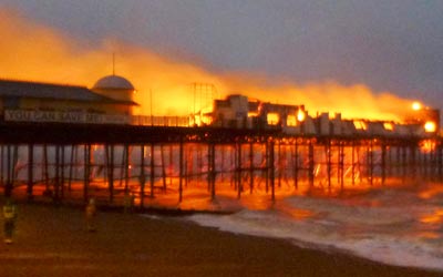 أسفر حريق هائل عن تدمير جسر تاريخي في بلدة هاستينجز في إيست ساسكس بجنوب انجلترا.
