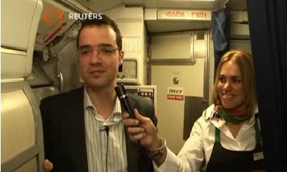 باغت أحد ركاب طائرة صديقته المضيفة بعرض زواج يعلنه من قمرة الملاح.