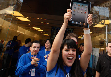 وحرصت حشود المتسوقين على انفاق مئات الدولارات لشراء الجهاز الجديد والذى يوضح ان الطلب متزايد على الجهاز على الرغم من هجوم الشركات المصنعة والمتنافسة منذ اطلاق الجهاز الأصلى العام الماضى.